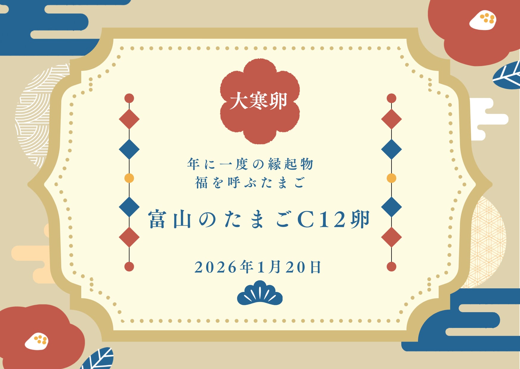 「大寒たまご」とは、二十四節季の1つで、1年で最も寒さが厳しくなる「大寒(1月20日)」に産まれた卵です。冬場は、厳しい寒さによって鶏の産卵数が自然と少なくなりますが、その寒さに耐えて産まれたたまごは「大寒たまご」と呼ばれ、大変貴重で栄養価が高いと言われています。「大寒たまご」を食べるとその一年が「健康で過ごせる」と言われており、さらに、風水では大寒の日に産まれた卵を食べると「金運が上昇する」と言われています。